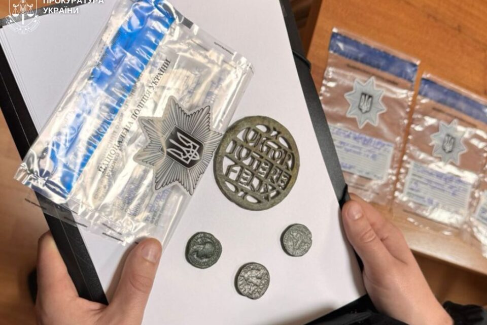 Під час проведення санкціонованого обшуку за місцем мешкання чоловіка, правоохоронці вилучили вказану «Накладку Рим», три монети під назвою «Гордіан ІІІ» та 19 наконечників для стріл. Артефакти, залежно від результату експертизи, можуть передати до Національного музею історії України: