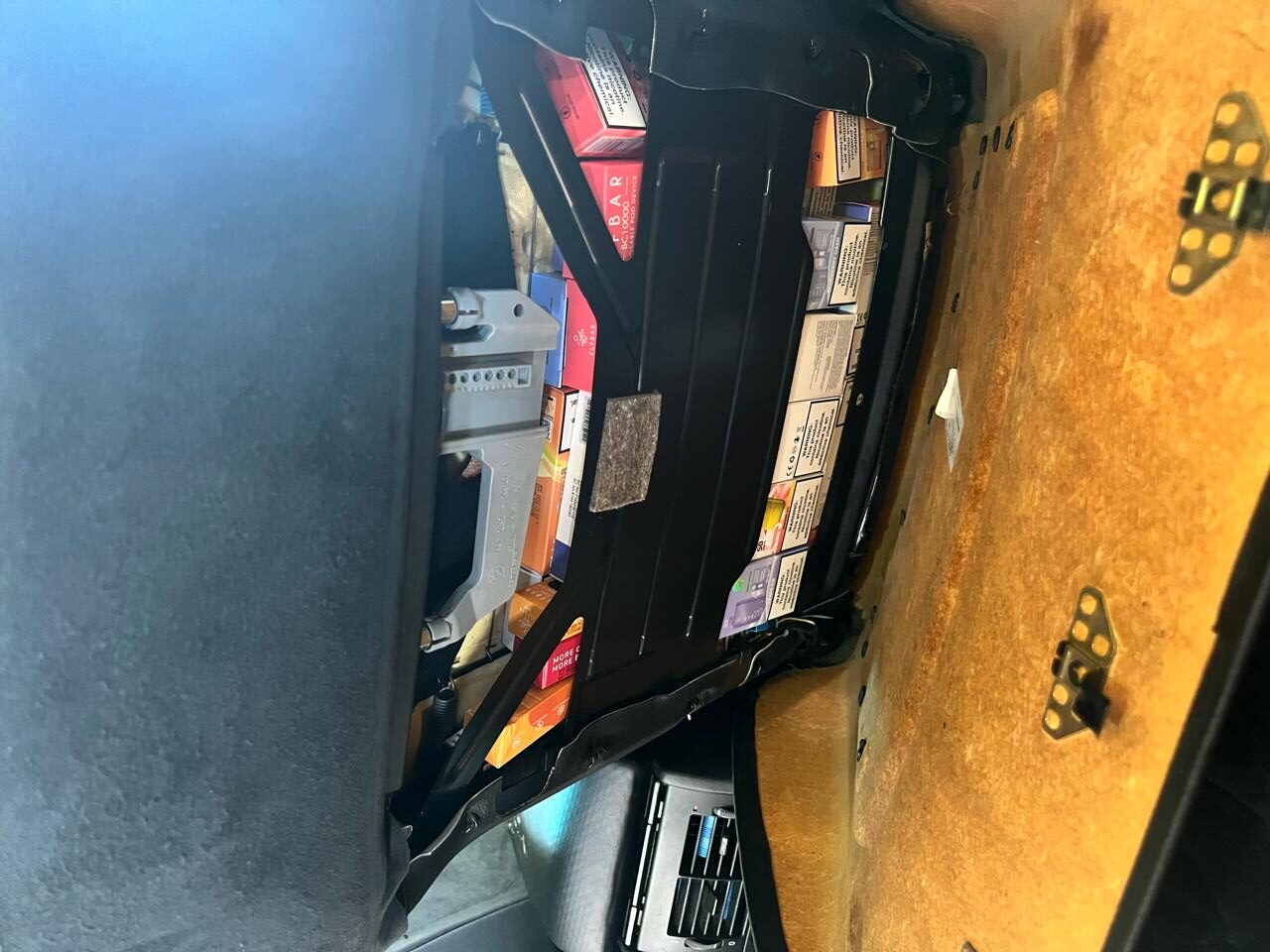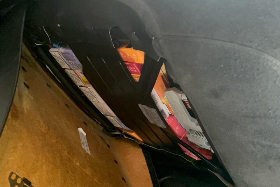 Використовуючи конструктивні особливості свого автомобілю, 39-річний громадянин Молдови приховав під обшивкою багажного відділення та передніх пасажирських сидінь майже півтори сотні упаковок електронних сигарет та рідини для їх заправки.