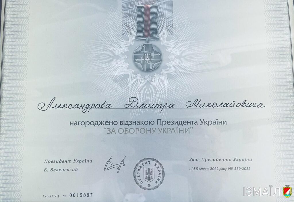Голова Одеської обласної військової адміністрації Олег Кіпер вручив лікарю Ізмаїльської міської центральної лікарні Дмитру Александрову грамоту з відзнакою Президента України «За оборону України» з нагоди професійного свята – Дня медичних працівників. Про це розповів Ізмаїльський міський голова Андрій Абрамченко, передає видання «Південь сьогодні».