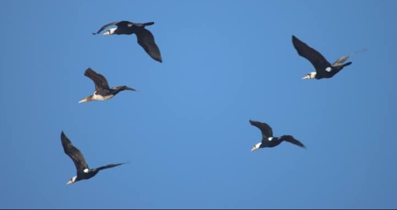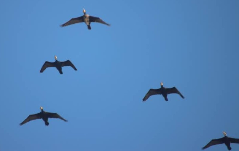 «На маршрутах по моніторингу за можливим викидом мазуту на узбережжя моря у нацпарку останніми тижнями ми бачимо зграї великого баклана у польоті і на воді.