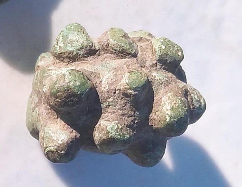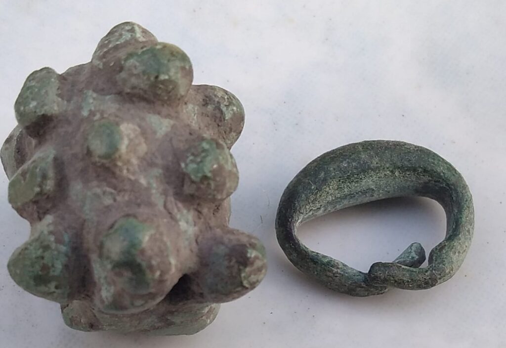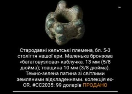 «Виріб у вигляді невеличкої шишки був зроблений з бронзи, мав отвір, і цим нагадував мені стародавню намистину, яку під віковим земляним нальотом прикрашала благородна «римська» патина. Подібна річ мені потрапила вперше, тому я звернувся до свого друга-археолога. Він визначив ії, як скіфську намистину», – написав дослідник.