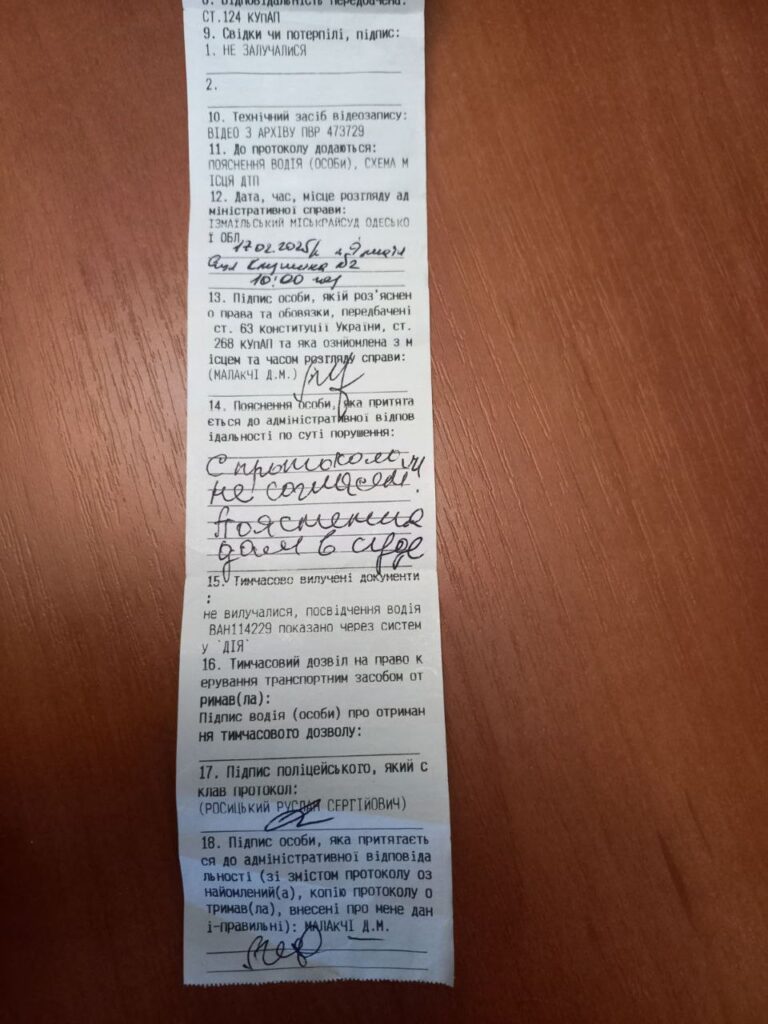 Денис М. зі змістом протоколу не згодний, про що він написав у відповідному полі, та сподівається, що розголос та належний контроль допоможуть знайти справедливість!