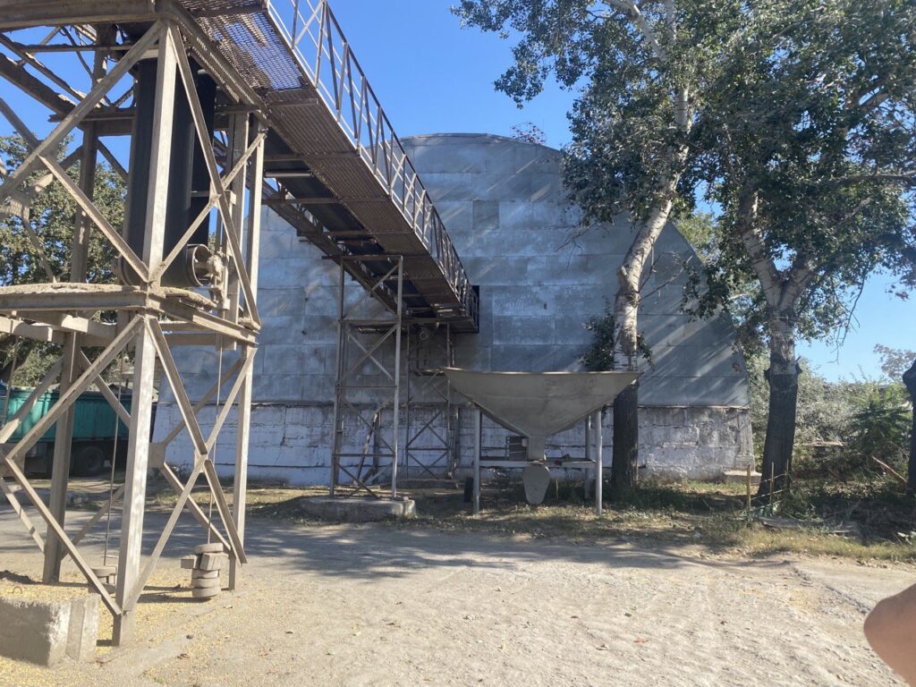 Далі на території порту розташовано так звану завальну яму компанії «Зерновий термінал Кілія», куди відвантажується зерно, а далі конвеєром транспортується у приміщення складу. Але є нюанс. Склад належить ДП «Морський торговельний порт Усть-Дунайськ», а після приватизації – ТОВ «Еліксир Україна». На фото видно, що конвеєр вмонтовано у дах складу, тобто зерно відвантажувалося саме туди.
