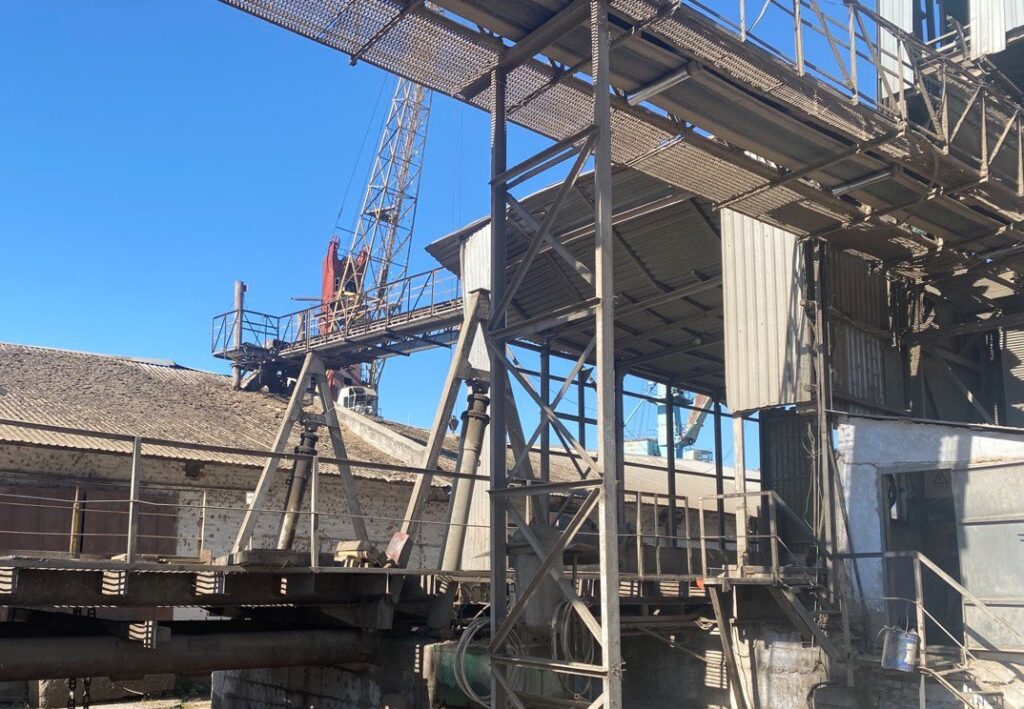 На території порту ми побачили також декілька будівель та конструкцій ТОВ «Зерновий термінал Кілія» – ангар, з’єднаний зі стрічковим перевантажувачем (мобільним суднонавантажувальним обладнанням), на який також відсутні сервітути чи договори оренди.