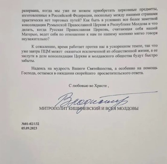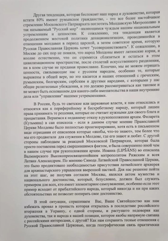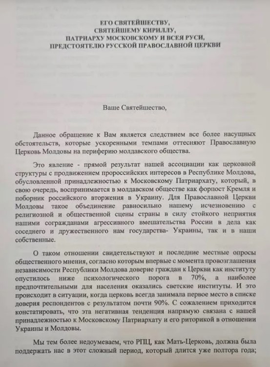 Справжність листа, фото якого 20 жовтня опублікував екс-депутат від Християнсько-демократичної партії Влад Кубряков, підтвердив прес-секретар митрополії Молдови Вадим Кейбаш.