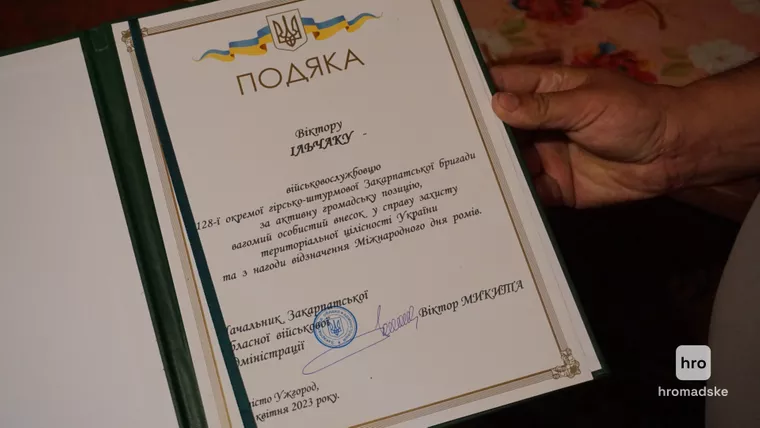 На сьогоднішній день в армії України служить близько двох сотень військових ромського походження. Не всі з них відкрито говорять про свою етнічну приналежність, тому важко визначити точну кількість. Віктор Ільчак згодом стає більш енергійним. Він встає, уважно виправляє свою військову форму, розправляє плечі, перевіряє наявність всіх шевронів на рукаві. Далі Віктор обережно бере папку і відкриває її. Всередині — подяка від керівництва Закарпатської обласної військової адміністрації за «особистий внесок у захисті територіальної цілісності України та з нагоди Міжнародного дня ромів». Також Віктор має нагороду, якою особливо пишається: орден «За мужність» третього ступеня від президента України. Вйськовослужбовець отримав цю медаль за врятовані життя, коли він евакуював своїх побратимів у Волновасі весною 2022 року. Він показує ще одну медаль і читає вголос: «За героїзм та особисту мужність». Цю медаль він отримав ще у 2016 році.