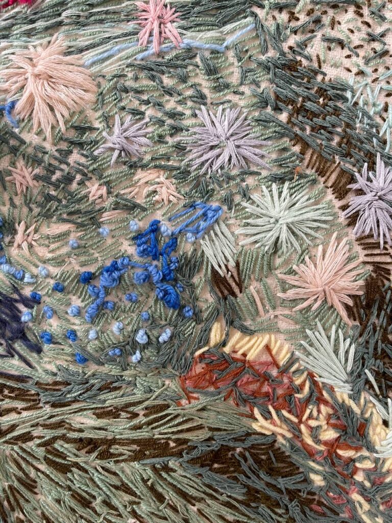 «У нас є артпростір, який я створила у місті під час війни, і це панно вишивалося тут. Воно було присутнім на багатьох заходах, в тому числі благодійних, які у нас проходили в просторі або в місті. У людей, які приходили на заходи, була можливість трошки повишивати, зробити свій внесок у створення цього панно. Це сотня чи дві сотні людей долучалися. Кожен знає, який куточок він вишивав протягом цього року, і, звісно, вони прийдуть і впізнають цей куточок», – розповіла Тетяна Єсєналієва.