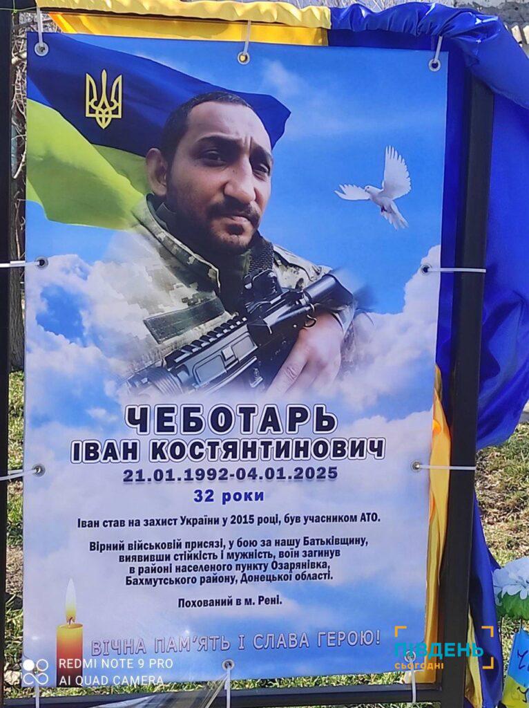 Іван Чеботар. У 2009 році закінчив 11 класів Ренійської школи №6. У 2014 році вперше добровільно пішов служити. Потім вдруге. Після невеликої перерви, у червні 2024 року знову пішов служити в ЗСУ за контрактом. Загинув сержант-кулеметник 4 січня 2025 року під час бойового завдання в районі села Озарянівка Бахмутського району Донецької області. 1 січня йому виповнилося б 33.