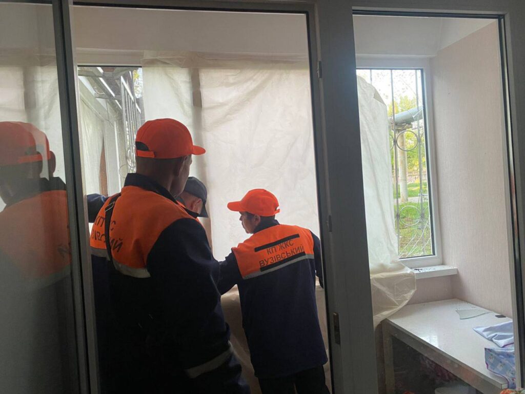 По информации департамента, коммунальные службы занимаются очисткой территории от выбитых стекол и рам. На затягивание оконных проемов ушло 1 800 квадратных метров пленки. По состоянию на утро 8 мая осталось в работе еще порядка 25 процентов квартир (с учётом тех, из которых временно выехали жильцы).