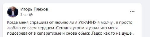 Добавим, что данную ситуацию Игорь Плехов прокомментировал и на своей официальной Facebook-странице.