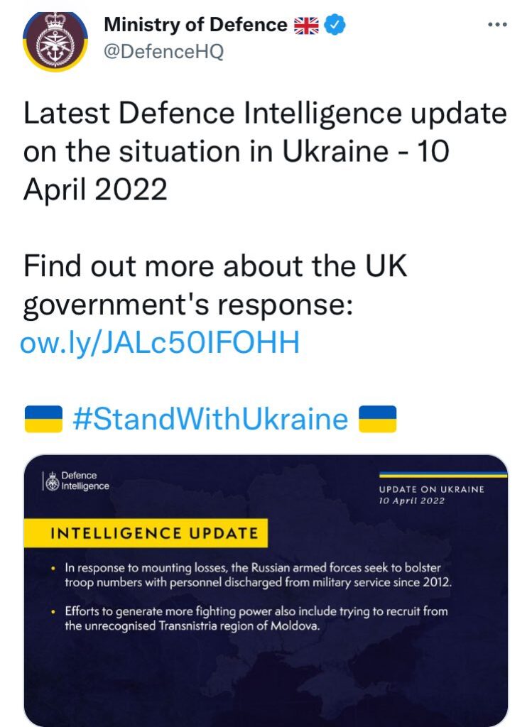 По данным разведки, в ответ на потери, российские вооруженные силы стремятся пополнить численность личного состава людьми, уволенными с военной службы с 2012 года.