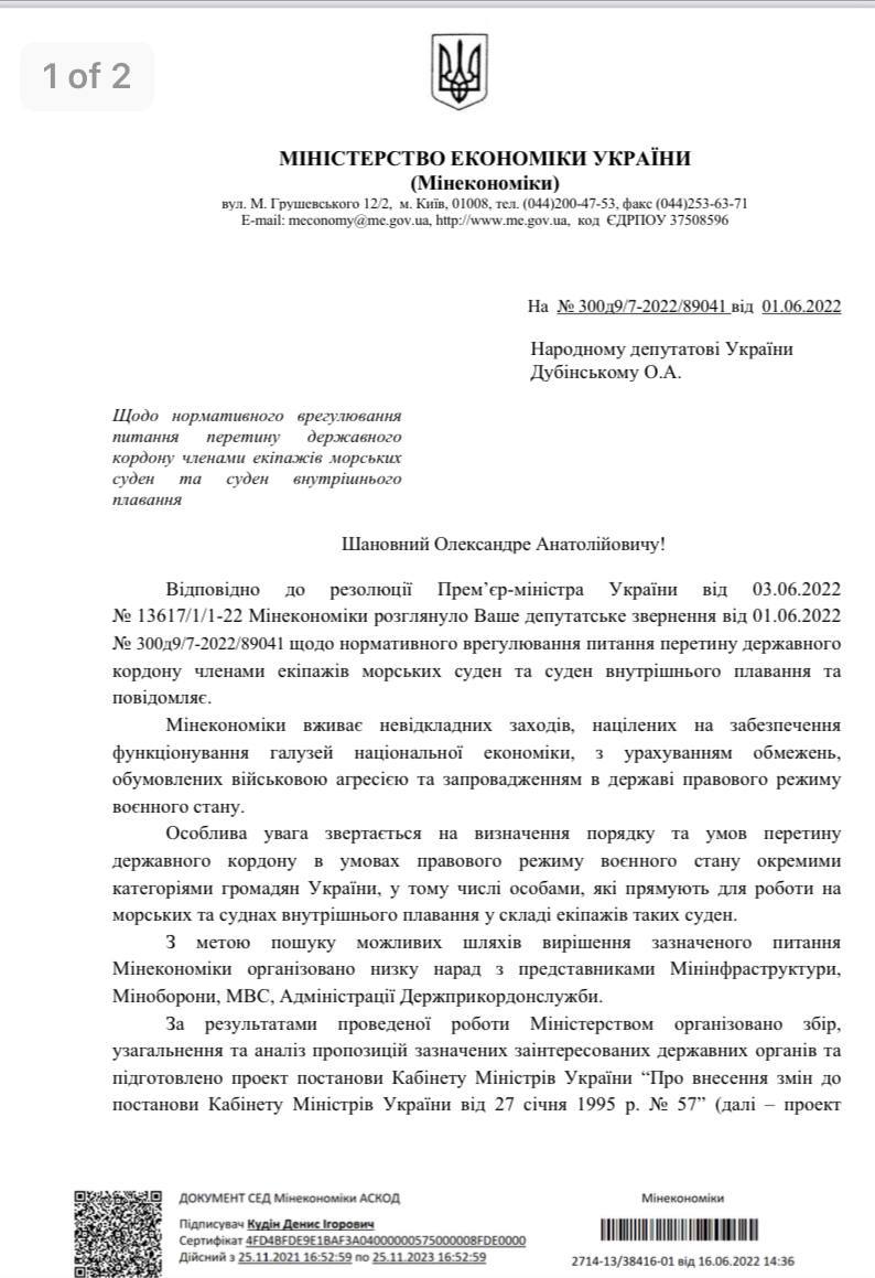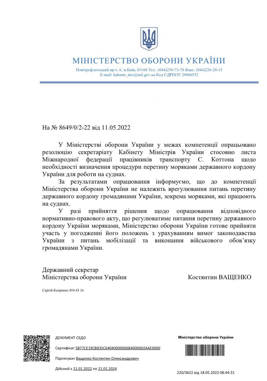 – Насколько я знаю, USU также обращалась к украинским властям с просьбой разрешить выезд моряков на суда для выполнения ими своих обязанностей. Вам удалось получить на них ответы?