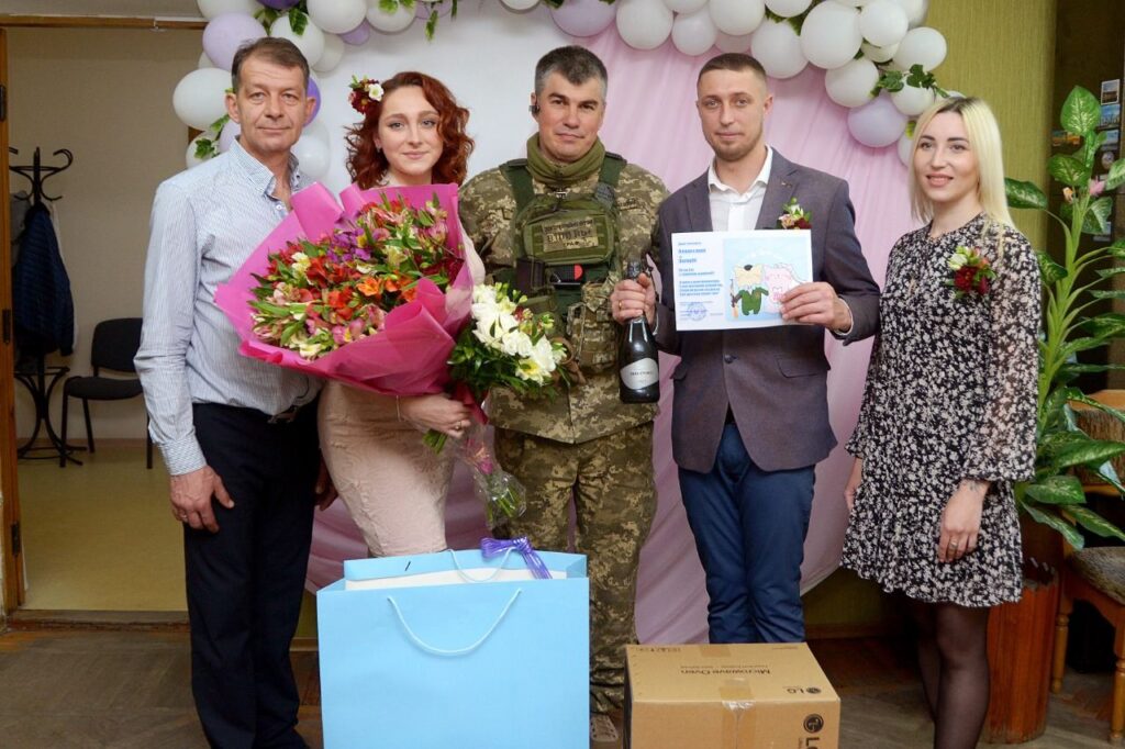 Организовать свадьбу в период войны в разрушенном городе было непросто, но на помощь влюбленным пришли бойцы 229 отдельного батальона 127 отдельной бригады ТрО, которые охотно приобщились к организации официальной части церемонии и поделились трогательной историей на своей Facebook-странице.