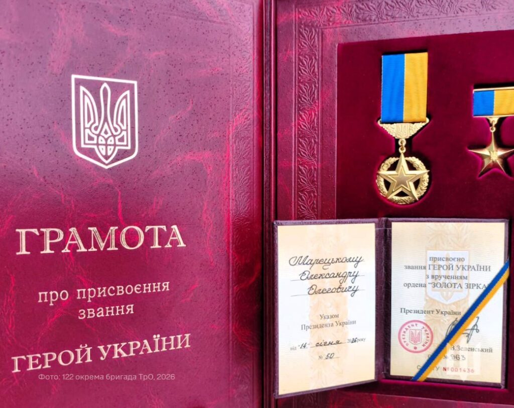 Указом Президента України №50/2026 присвоєно звання Герой України солдату Олександру Марецькому – військовослужбовцю 3-го батальйону 122 окремої бригади територіальної оборони ЗСУ. Про це пресслужба 122 бригади повідомила на своїй сторінці в Фейсбук, передає видання «Південь сьогодні».