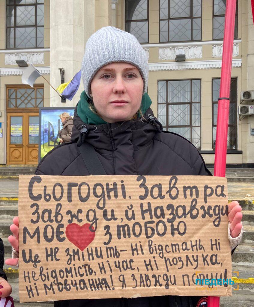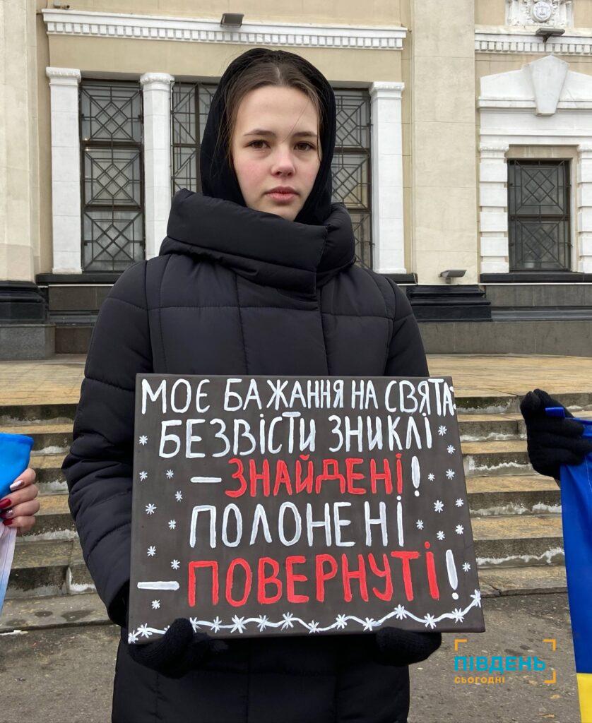 «Сьогодні ми прийшли на цю акцію нагадати українській спільноті, міжнародній спільноті, що наші рідні перебувають в неволі, наші рідні зниклі безвісти, наші рідні опинилися в величезній біді, і для них свят немає. Ми за них молимося, ми їх чекаємо і сподіваємося на все краще. Тож закликаємо українську спільноту приєднуватись до наших українських родин, або підтримати наших рідних, які стали для них щитом», – наголошує Вікторія.