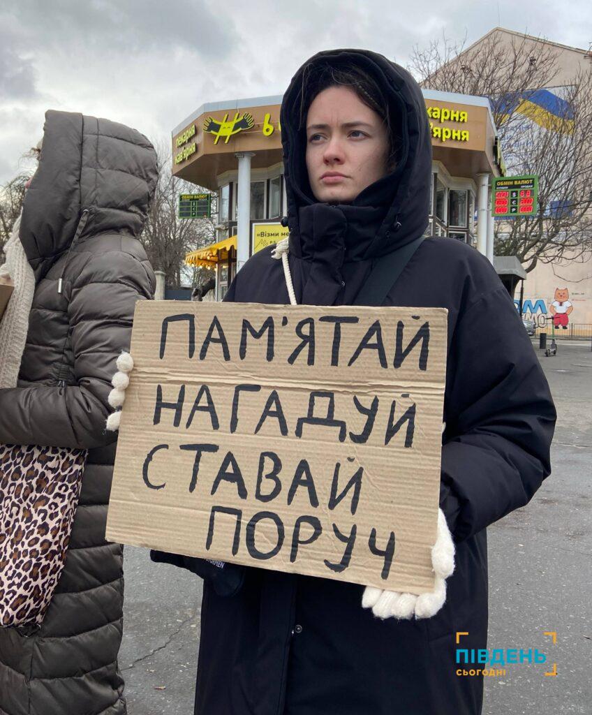 «Я б дуже хотіла звернутися до всіх захисників: адже Міжнародний комітет Червоного Хреста не відвідує колонії, не встановлює наших людей, вони, які вибралися звідти, мають можливість говорити – будь ласка, говоріть, розповідайте, відвідуйте акції, дивіться портрети наших хлопців, щоб якомога більше з них повернулися додому. Щоб матері, дружини, сестри, батьки, отримали звісточку хоч маленьку. Це дасть нам таку надію, такий ресурс для боротьби, подальшого розголосу», – звернулася організаторка акцій Вікторія.