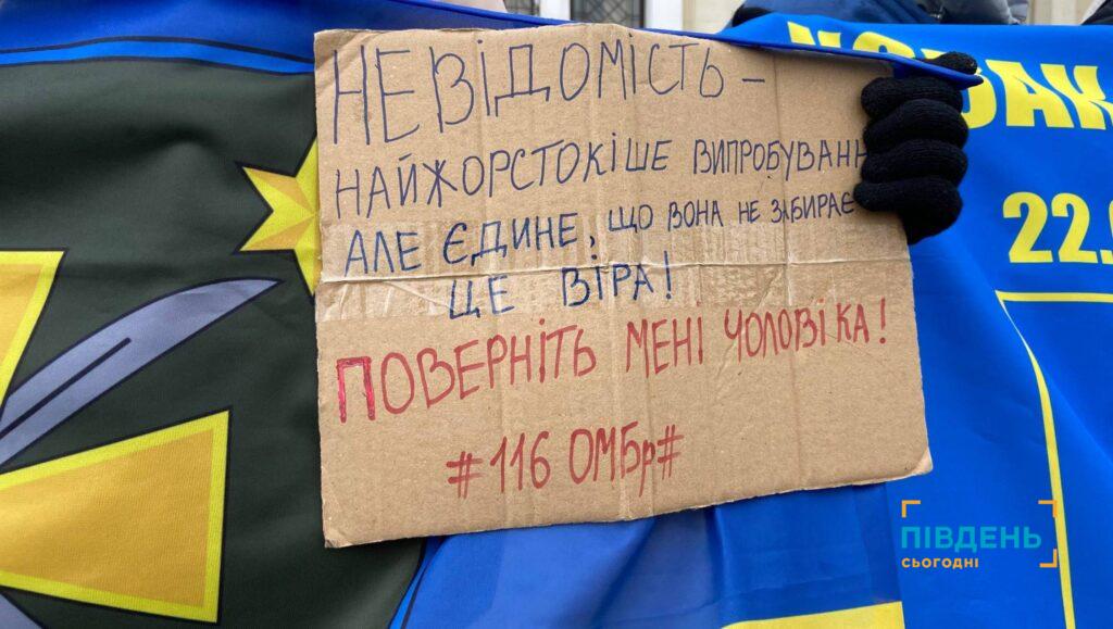 «Годі заспокійливих текстів та співчуття – ми заслуговуємо знати правду та повернути наших людей, де б вони не перебували. Світе, не будь байдужим. Знай, Україна твій щит сьогодні, і твій обов’язок допомагати повертати наших людей. Нейтральність у цих питаннях – це співучасть. Ми вимагаємо доступу міжнародних гуманітарних місій до всіх місць утримання, негайного підтвердження статусу безвісти зниклих, регулярного зв’язку полонених з родинами, повернення всіх полонених та незаконно утриманих цивільних, притягнення винних до відповідальності», – зауважила сестра безвісти зниклого прикордонника Олена.