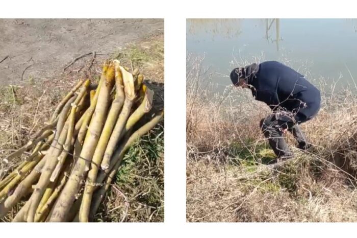 Аби врятувати річку, житель Сарати закопує на березі обрізки гілок, які назбирав в центрі