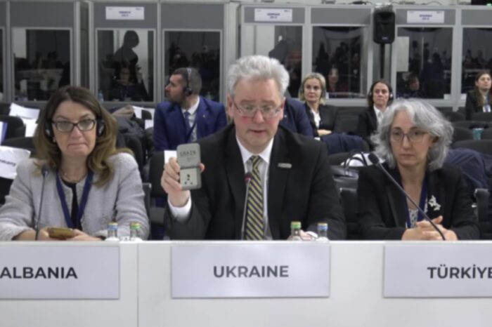 Читати даліПостійний представник України при міжнародних організаціях у Відні Євгеній Цимбалюк продемонстрував на Раді міністрів
