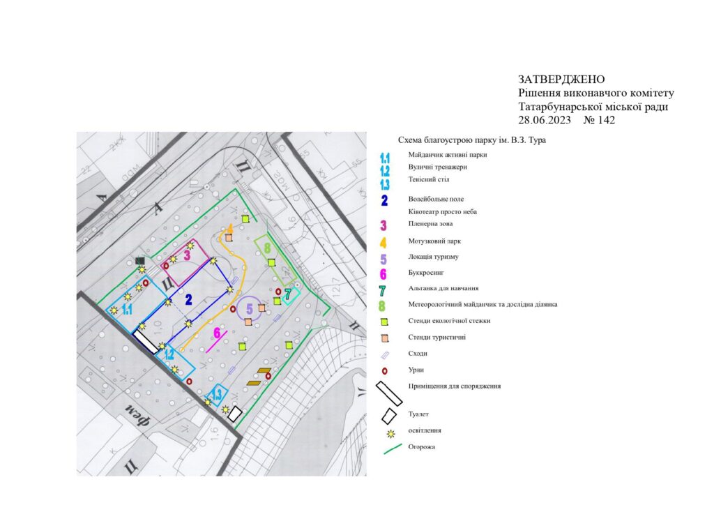 У Татарбунарах Білгород-Дністровського району склалася критична ситуація щодо організації відпочинку дітей старшого віку та підлітків. Тому учасники дитячого самоврядування «Творче містечко» місцевого Будинку дитячої та юнацької творчості пропонують заходи стосовно облаштування парку імені В.З. Тура для активного відпочинку підлітків та розширення навчальних зон для вихованців БДЮТ. Основною метою є створення кращих умов для відпочинку та дозвілля татарбунарців в парку шляхом благоустрою території та установки об’єктів інфраструктури: встановлення паркану, садово-паркових меблів, обладнання спортивних майданчиків, мотузкового парку та урн для сміття. Авторами заходів пропонується створення десяти функціональних зон, які дозволять забезпечити різні потреби відвідувачів парку.