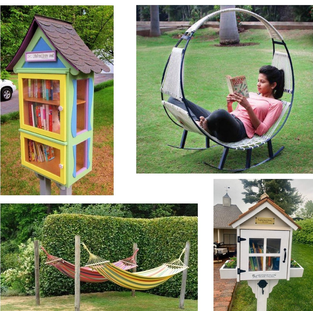 А от поява зони буккросингу надасть змогу популяризувати культуру читання серед підлітків та без фінансових витрат мати доступ до безлічі книг. Діти зможуть обмінюватися книжками, залишаючи їх у вільному доступі в спеціальному боксі, а також можна почитати книгу на місці сидячи в гамаку. Для цього потрібно виготовити бокс для зберігання книг та облаштувати територію гамаками.