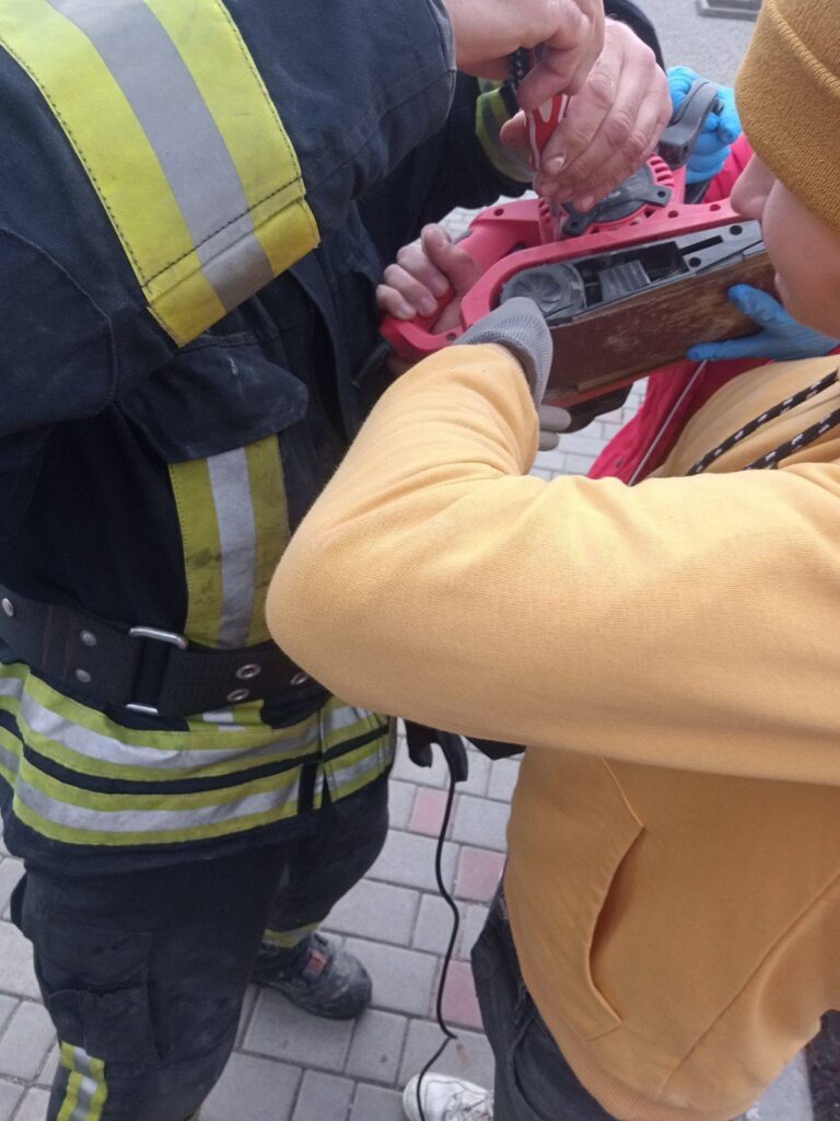 До місця події спрямували аварійно-рятувальний підрозділ ДСНС. За допомогою акумуляторного кутошліфувального інструменту рятувальники звільнили палець хлопця, після чого постраждалого було госпіталізовано до приймального відділення лікарні.