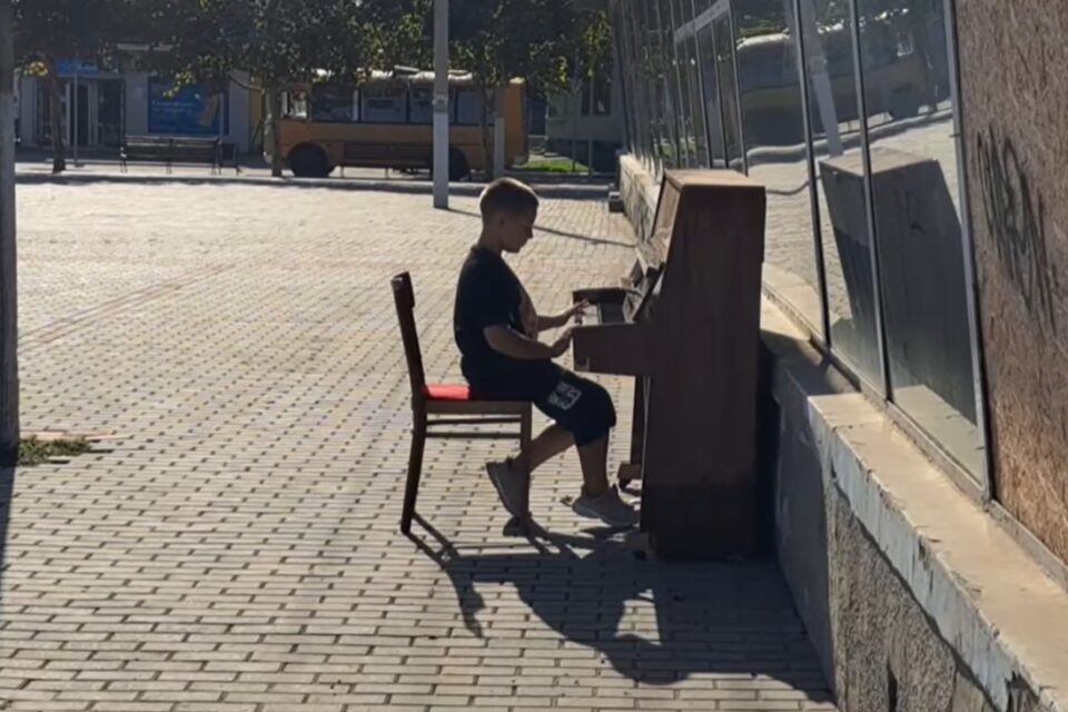 Відео, на якому хлопчик грає на піаніно, що стоїть під стінами будівлі, опублікували у Фейсбук місцеві жителі. На кадрах не видно, проте коментатори пишуть, що над інструментом є навіс, тому дощ йому не сильно зашкодить.