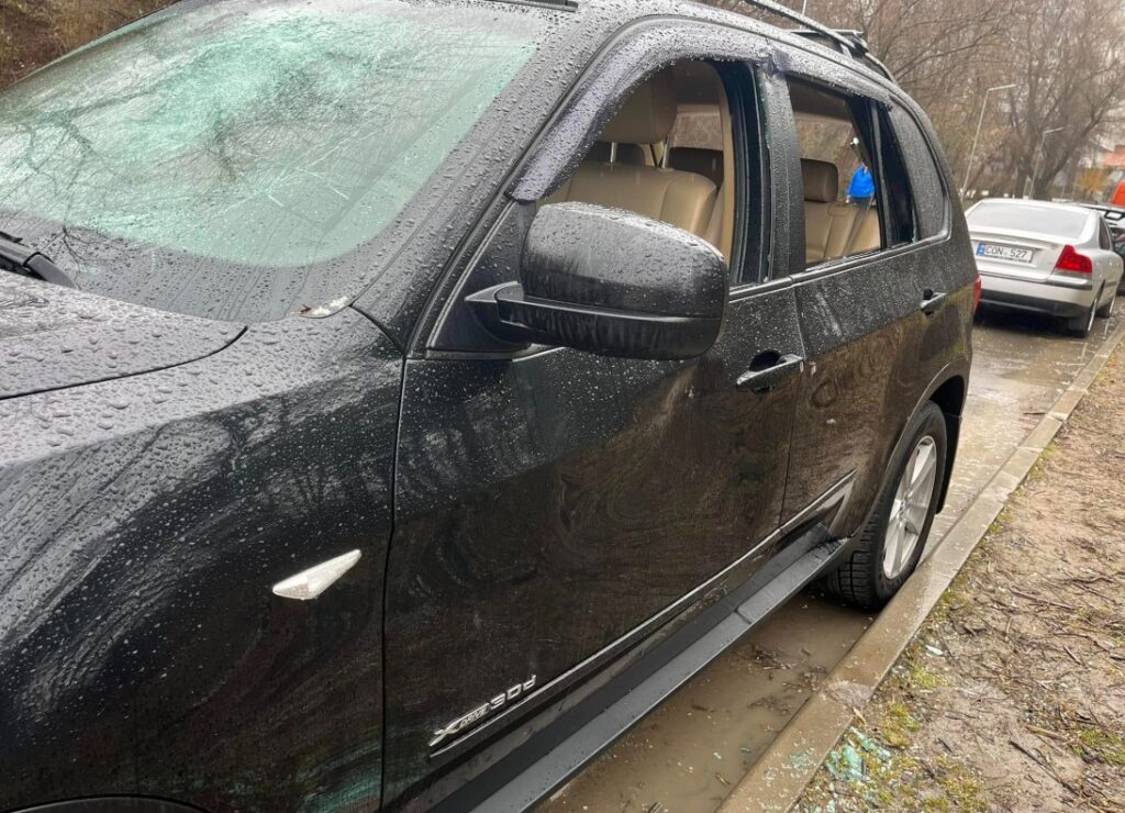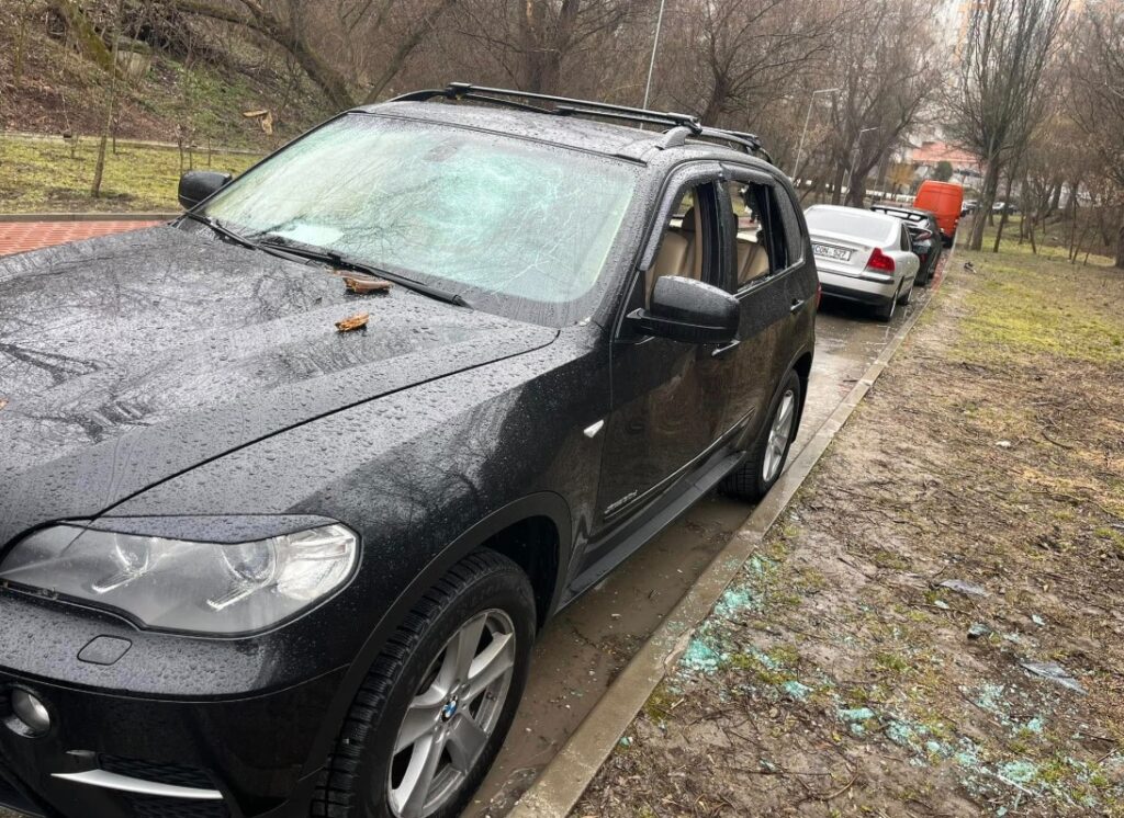 Наші молдовські колеги зазначили, що машина з розбитим склом весь день стоїть під дощем, тому в соцмережах шукають власника автомобіля. Автомобіль сильно пошкоджений, вибито майже все скло, деформовано двері та капот.