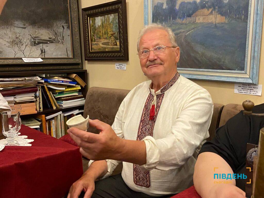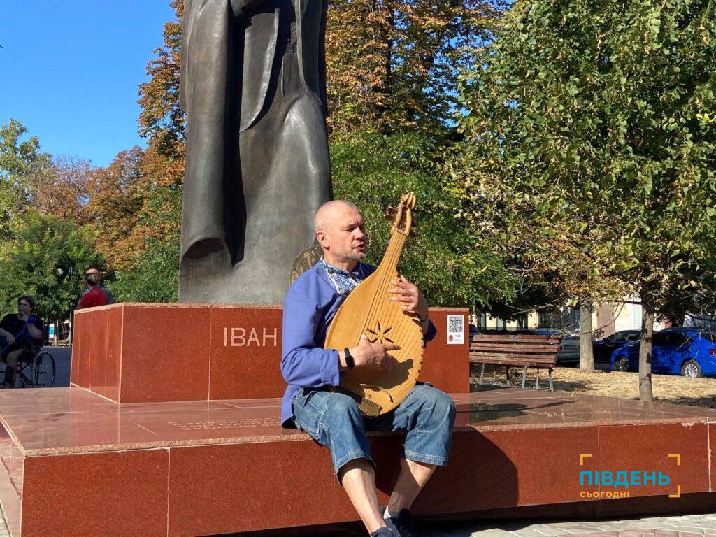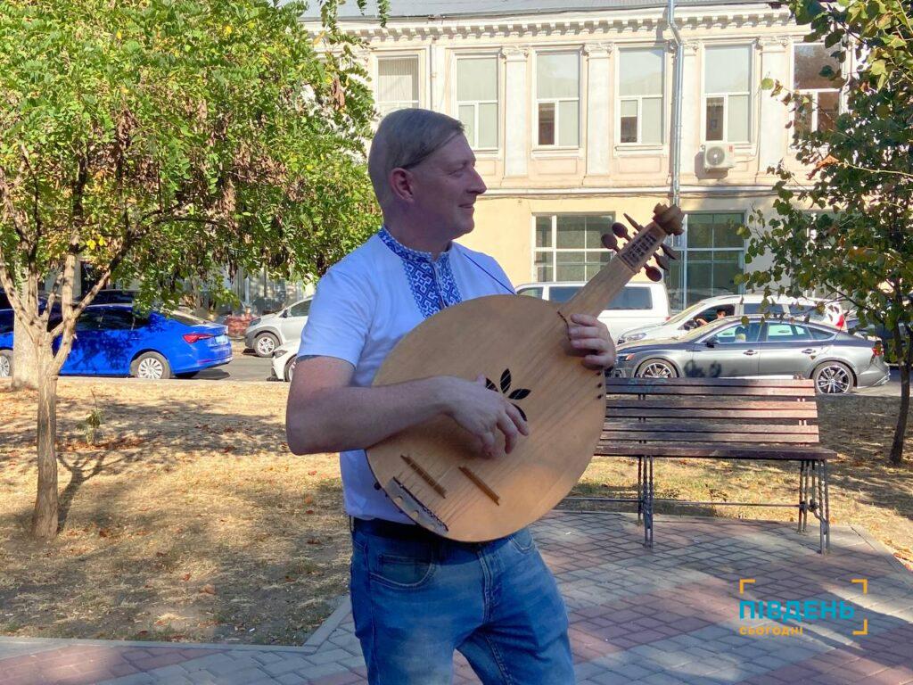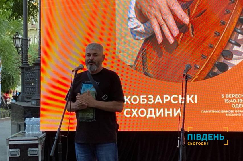«Тому що кобзарі, лірники, бандуристи в Одесі були завжди. І саме та музика, яку ви почуєте сьогодні, звучала в Одесі і в 19, і 18, і попередні сторіччя. Це є реконструкція, зроблена власноруч мною у 2011 році, і тим самим, як одесит, я відновив цією кобзою Одеську майстерню, яка існувала наприкінці 19 сторіччя на вулиці Малій Арнаутській. Тут недалеко, на Тираспольській, жив лірник. На жаль, з приходом московщини на наші терени, радянської влади, зникла і кобзарня, інструменти, і сам лірник. Але ми, сучасні реконструктори, робимо все для того, щоб відновити цю традицію. І для нас дуже знаково, що в Одесі відбуваються кобзарські сходини, і братчики найбільших цехів – Львівського, Київського, Харківського – радо приїжджають до нас, і вже не перший рік ми зустрічаємось на традиційних одеських кобзарських сходинах».