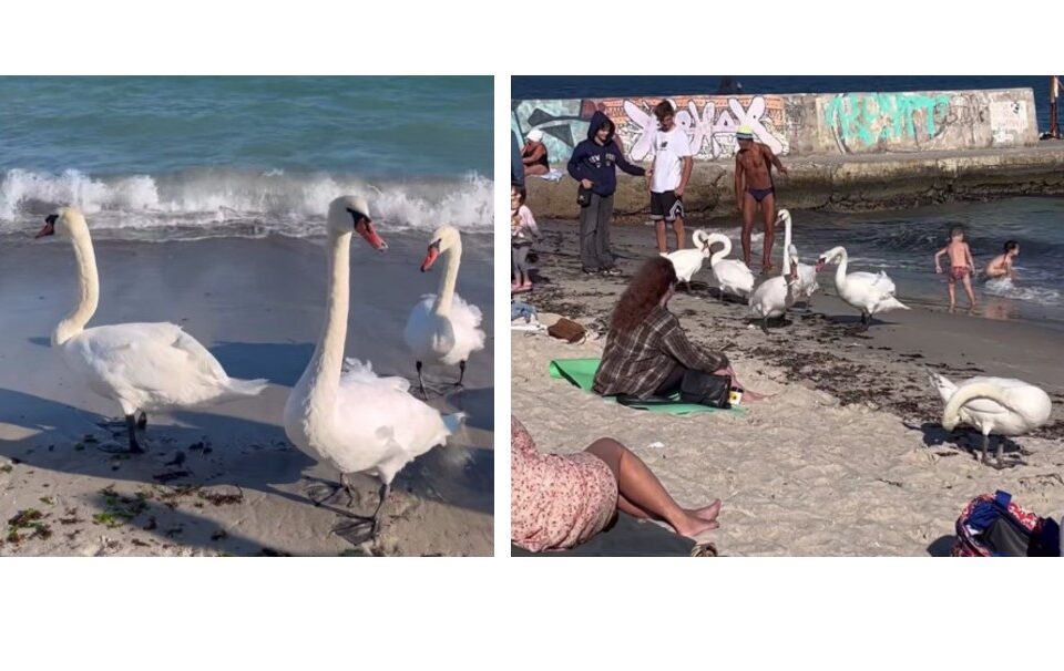 В Одесі разом з відпочиваючими на пляжі «засмагають» лебеді