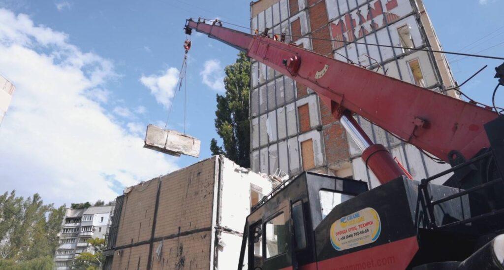 В Одесі розпочався капітальний ремонт пошкодженої ворожим дроном дев’ятиповерхівки, де загинуло 12 людей