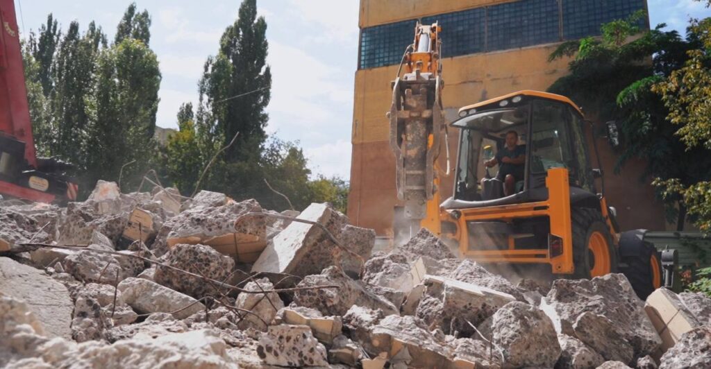 Станом на сьогодні вже здійснено підсилення та фіксацію залізобетонних елементів, що залишаються для подальшої експлуатації. Зокрема, стабілізовано стіну будівлі та проведено її закріплення до плит перекриття.