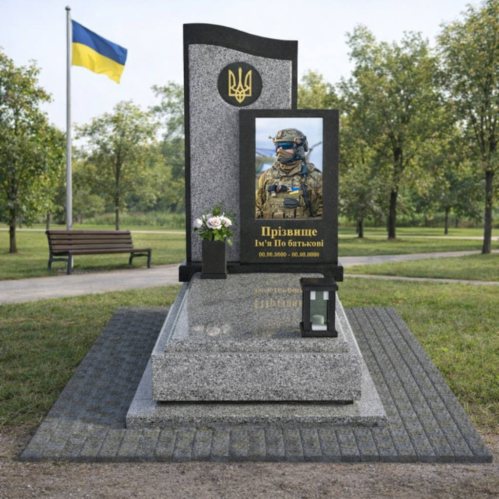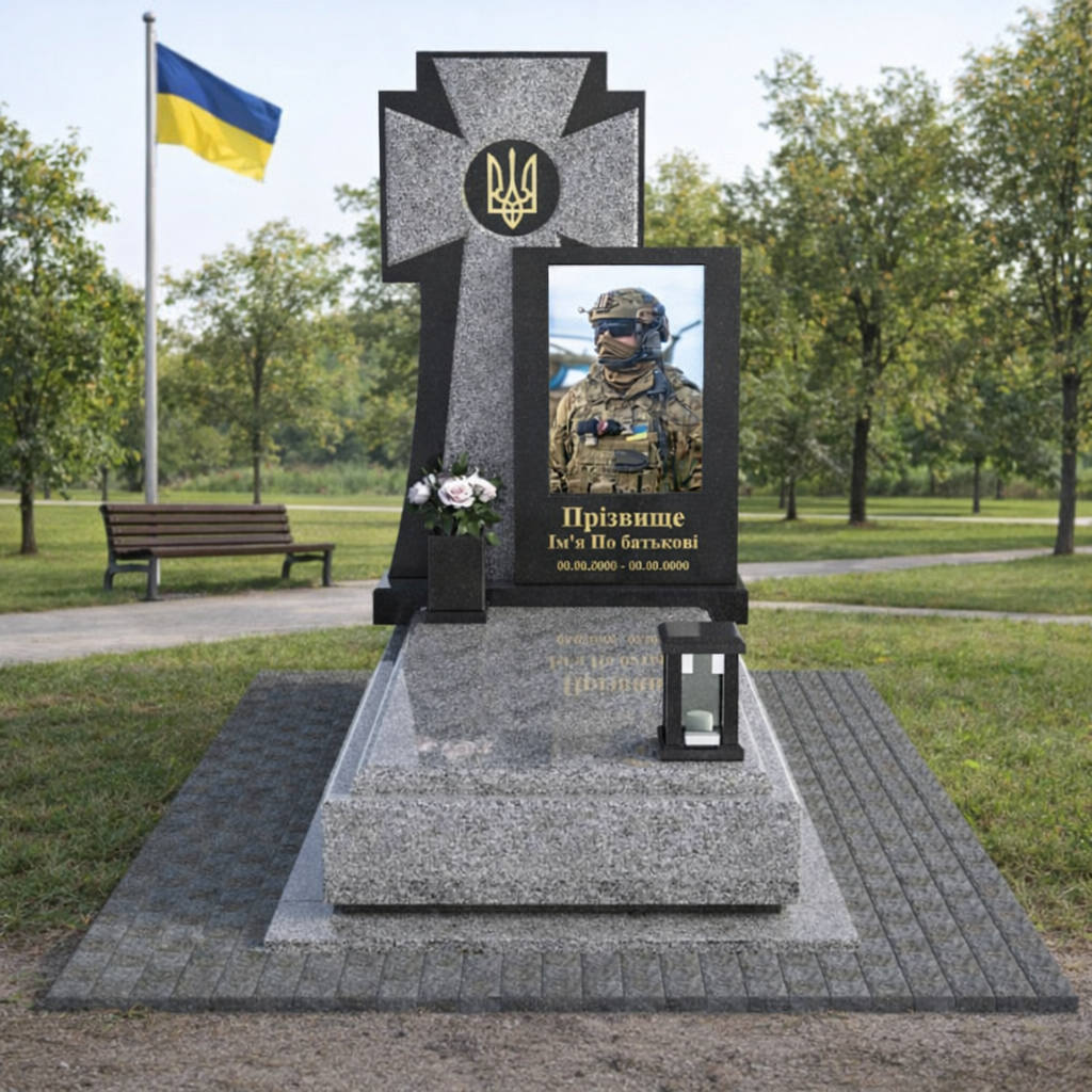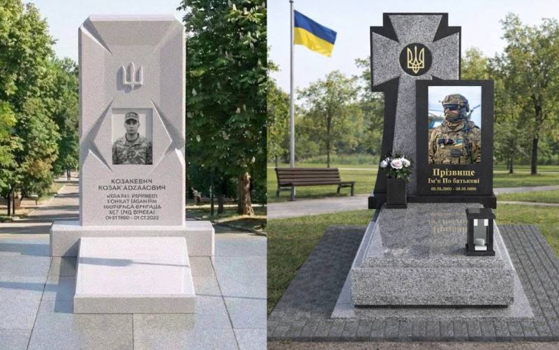 «Ця форма пам’ятника була моя особиста пропозиція на загал, бо ми вже самі шукали хрест козацький, який відповідає не лише християнським символам, це типовий лапчастий хрест, який зустрічається на похованнях у нас навколо Одеси на старих козацьких кладовищах. Тобто це відповідає і місцевим традиціям, і традиціям взагалі війська, має символ ЗСУ, і тому це підходить до військового поховання. Ми дуже зважено підходили до вибору моделі. Проєктант міста допоміг нам її доробити, зробив відповідні зміни під наш матеріал, наші побажання, тобто це не просто «магазинний» проєкт, в чому нас звинувачують. Чому ми взяли сірий граніт: тому що чорне відокремлює, робить фон. Родини хочуть зображення своїх героїв. Для цього найбільше підходить чорний граніт. У нас світла пам’ять проявляється саме у світлих зображеннях наших воїнів. Вони виходять із темряви і як світяться до нас», – каже мати полеглого Героя.