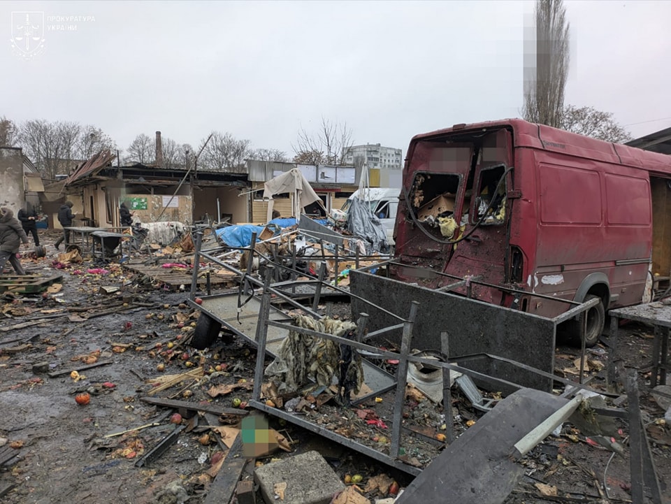 Суттєвих пошкоджень зазнала торгівельна інфраструктура: вогнем охопило павільйони на одному з ринків міста та пошкоджено будівлю супермаркету.Вибито скління у прилеглих будинках, зайнялися 15 приватних автомобілей.