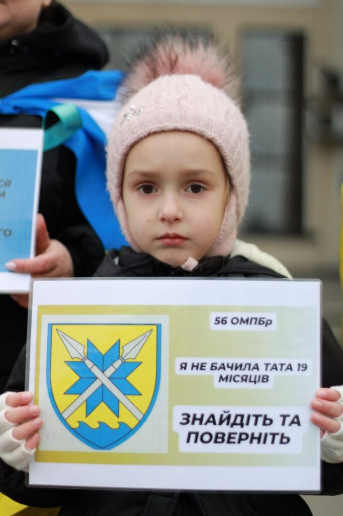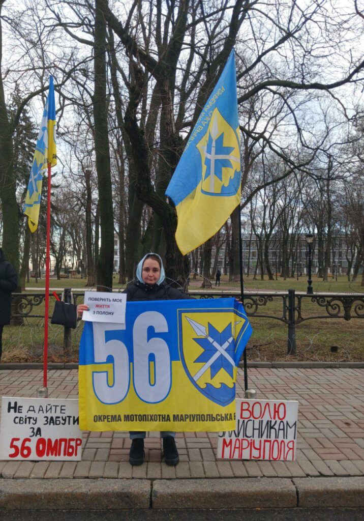 Далі знову процедури оформлення відповідної документації, отримання сповіщення про полон від військової частини… Спершу родині радили не розповсюджувати жодну інформацію – аби не нашкодити. Тож ніякі акції Мар’яна до вересня 2024 року й не відвідувала. Але водночас почала знайомитись та спілкуватись з іншими родинами захисників 56 ОМПБр – натрапивши на громадське об’єднання «Полігон 56 Бердянськ».