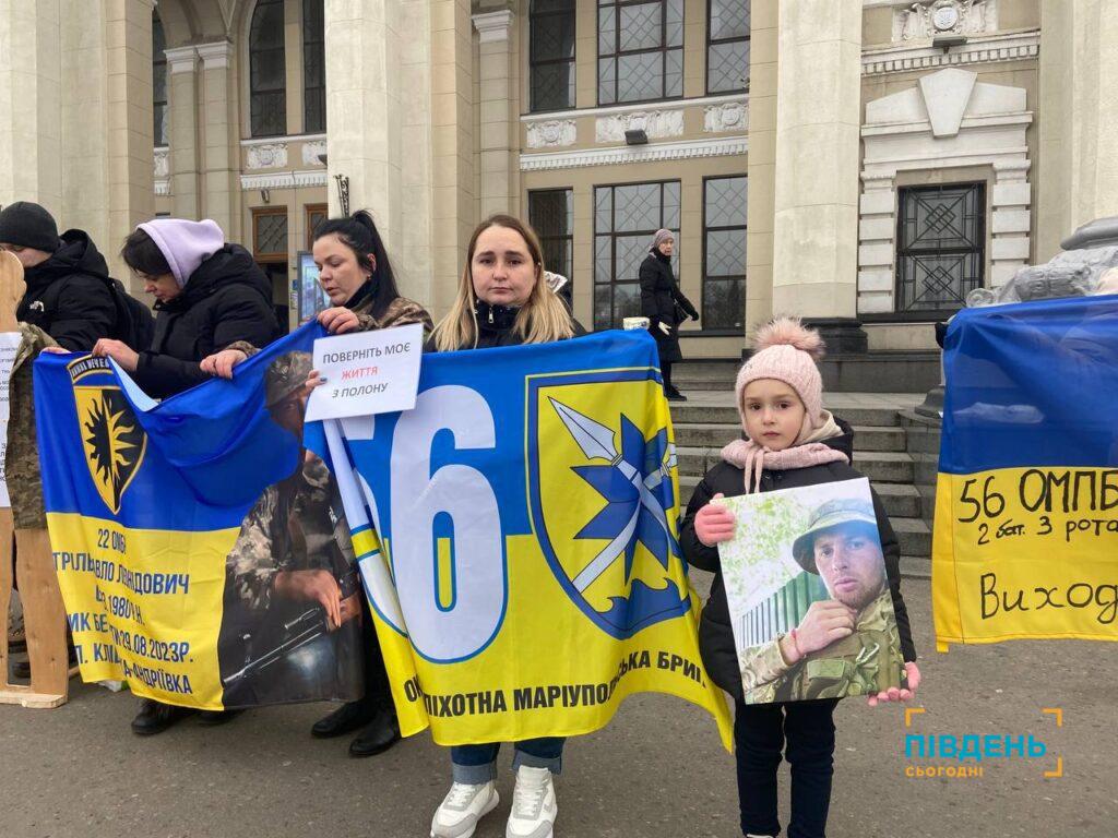 Щонеділі Мар’яна відвідує акції-нагадування на підтримку полонених та зниклих захисників. Вона дружина військовослужбовця 56 окремої мотопіхотної Маріупольської бригади Андрія, який вже півтора року перебуває у ворожому полоні. Про це вдалося дізнатися з російських телеграм-каналів та підтвердити українською стороною – Міжнародним Комітетом Червоного Хреста це і досі не підтверджено. На захисника вдома також чекає двоє маленьких діток: Поліні шість років, а її молодшому братику у квітні виповниться два роки – татка він бачив лише на фотографіях. Свою історію Мар’яна розповіла журналістці видання «Південь сьогодні».