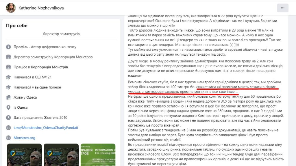 До речі, саме про доповідь виконуючого обов’язки Кубейського сільського голови Миколи Арабаджи під час засідання цієї групи розповіла у своєму дописі волонтерка Катерина Ножевнікова. За її словами мотивація звучала наступним чином: «захисники, які загинули, мають лежати в гідних умовах, а там корови заходять прямо на могили».