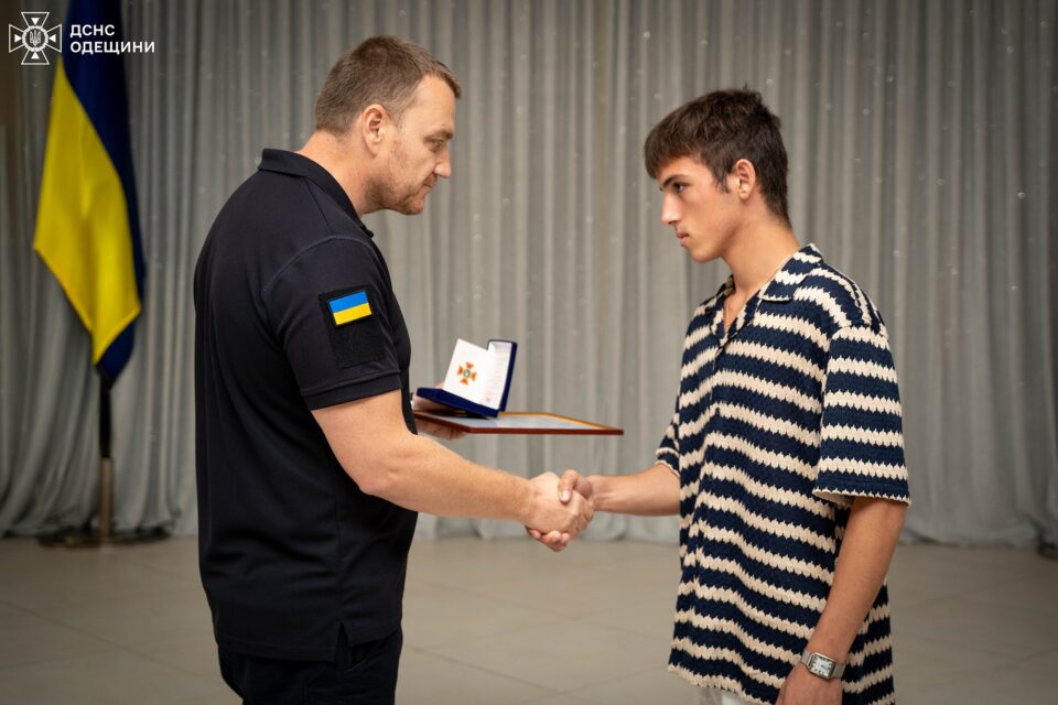 Начальник Головного управління ДСНС України в Одеській області Денис Платонов вручив нагрудний знак «За відвагу в надзвичайній ситуації» 16-річному Марку, який врятував з-під завалів свого товариша після ракетної атаки росії по Білгород-Дністровському ліцею. Про це повідомили у ГУ ДСНС в Одеській області, передає видання «Південь сьогодні».