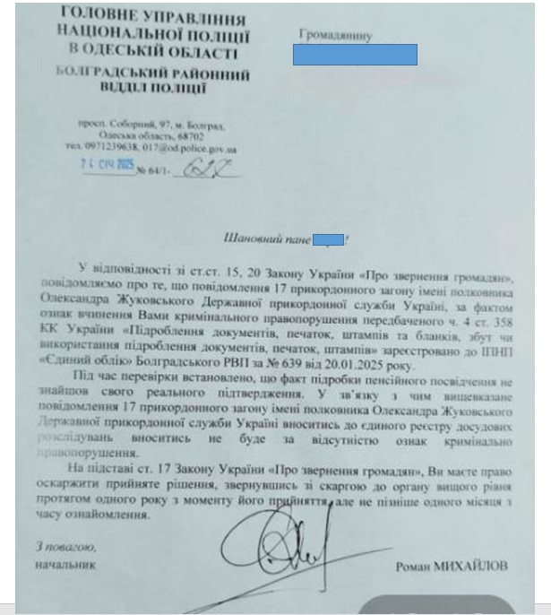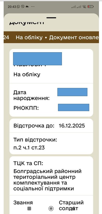 І от саме копію цього документу чоловік надав для перевірки прикордонникам у пункті пропуску «Нові Трояни», коли їхав до Молдови з родиною на орендованому мікроавтобусі. З собою він мав паспорт (звісно оригінал) та військовий квіток з усіма відмітками. Перевіряючим також показав «Оберіг», в якому оновлені всі дані, та «Дію», де, окрім інших документів, є і те саме пенсійне посвідчення. Каже, що навіть міг би протягом лічених хвилин повернутися додому і принести той самий оригінал.