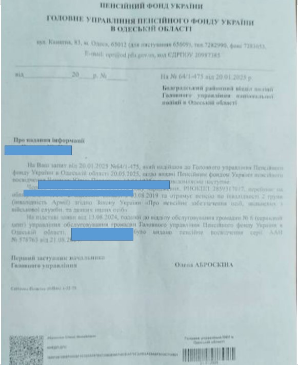 Пенсію Ю. отримує через інвалідність. Чоловік страждає від дуже високого тиску. При цьому зовнішньо виглядає здоровим, навіть кремезним. Свого часу він був співробітником МВС, працював дільничним у власному селі. А у 2017-2018 роках захищав Україну у Маріуполі. На пенсію вийшов у 2019-му. Інвалідність другої групи підтверджував два роки. В липні 2024-го вже отримав у документі напис «довічно».