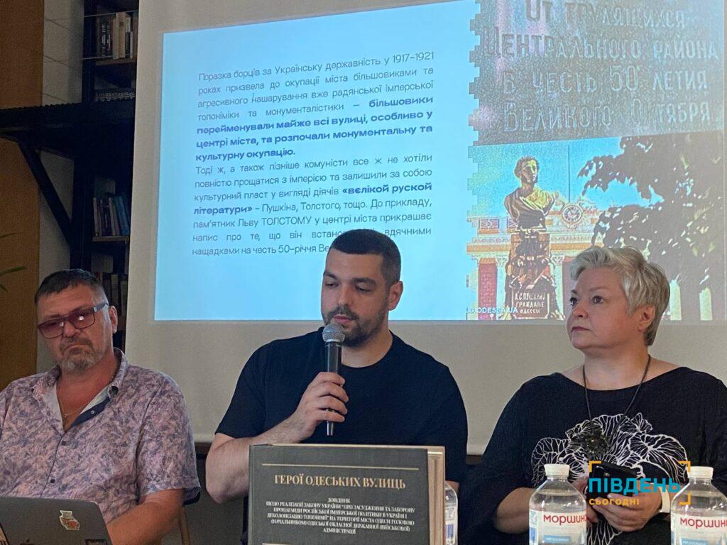 «Можливо, інакше і не могло бути. Інформація, матеріал, дані про цих людей, про ці історичні факти, про героїчних людей, які створювали Українську Народну Республіку і так далі – вони не були поширені настільки в масах, щоб це було нормально сприйнято. І оцей певний конфлікт, який розгорнувся після підписання керівником ОВА відповідних розпоряджень – він, я вважаю, розірвав ту бульбашку, в якій законсервувалася велика частина населення досить інтелігентних людей, які присвятили своє життя вивченню тих самих письменників, і ніколи не звертали увагу на якісь нюанси їх біографії. А Закон, який був прийнятий, дав чітко нам розстановку, кого ми можемо глорифікувати. Назви вулиць – це найвища міра глорифікації конкретних людей. І дійсно розуміння вже на 2023 році, 2024-му,2025-му, що ми не можемо глорифікувати працівника ЧК («Чрезвычайная комиссия» (Надзвичайна комісія) – перший орган державної безпеки Радянського союзу – Авт.) – мабуть, що вже має визріти. І на даний момент, мені здається, більшість одеситів, гостей міста, тих, хто втягнутий був в ту дискусію, вони вже могли вивчити і наш довідник, і поритися у доступній повністю інформації, і зрозуміти, чому ж такі рішення були прийняті».