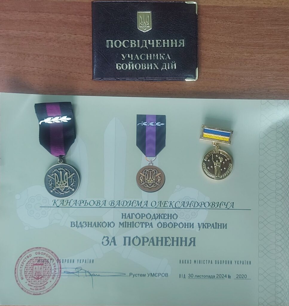 Після проходження підготовки у спеціальному учбовому підрозділі на початку липня 2024 року Вадим Канарьов був направлений на Покровський напрямок. В одному із запеклих боїв воїн був тяжко поранений. Дві доби, підтримуючи своїх побратимів, він не покидав позиції, на третю добу був евакуйований. Місяць лікувався у шпиталі міста Запоріжжя. Наразі захисник проходить реабілітацію за місцем проживання.