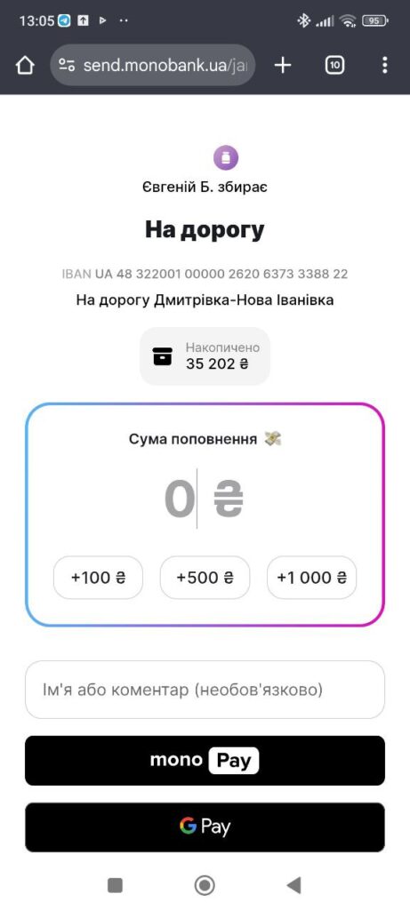 Як бачимо, підтримка з боку «підприємців, жителів та уродженців села» є, починаючи з того ж березня, в якому, за обіцянками, мали розпочатися роботи. Місцеві їх тоді і розпочали. І зараз продовжують. Гроші теж місцеві збирають. У «банці» зараз 35 202 гривні. Ще 13 000 зібрали готівкою. Люди сподіваються, що влада побачить їхню ініціативу та теж доєднається до вирішення проблеми.