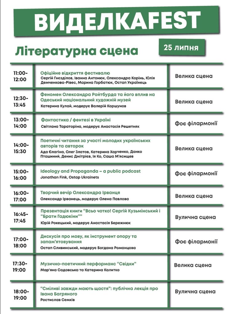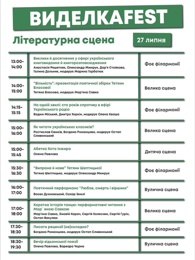 Протягом трьох днів на відвідувачів чекають літературна, музична та кіносцена.